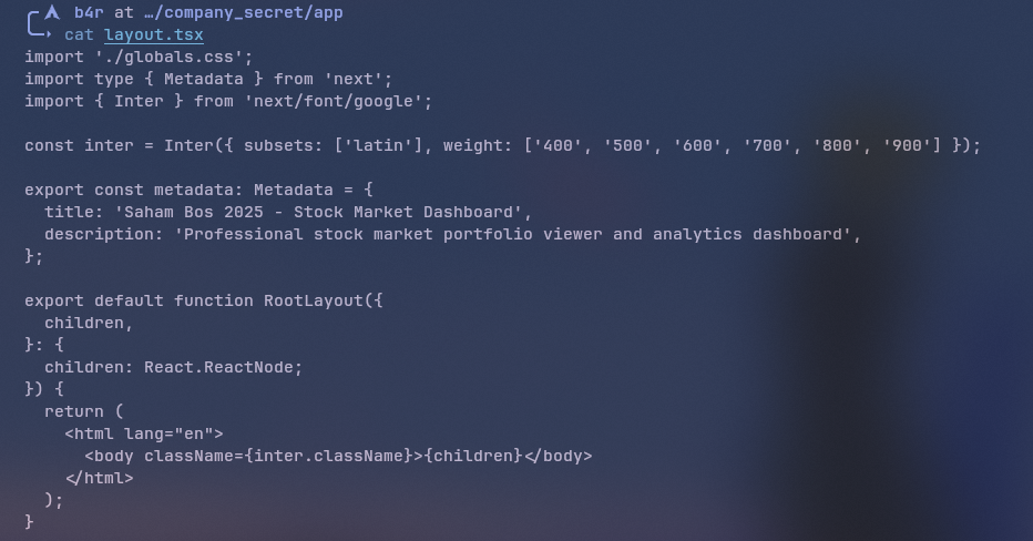<TabsContent value="holdings"> <StockTable /> </TabsContent> </Tabs> </div> </div> )}Title: Saham Bos 2025 - Stock Market Dashboard