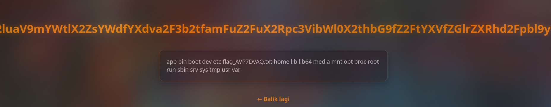 Kita lihat ada flag file di sana. Tinggal ganti command ls / jadi cat /nama_file_flag.