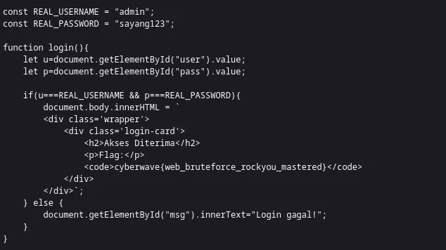 Langsung dihadapi login page, langsung kami lihat source code nya dan ditemukan